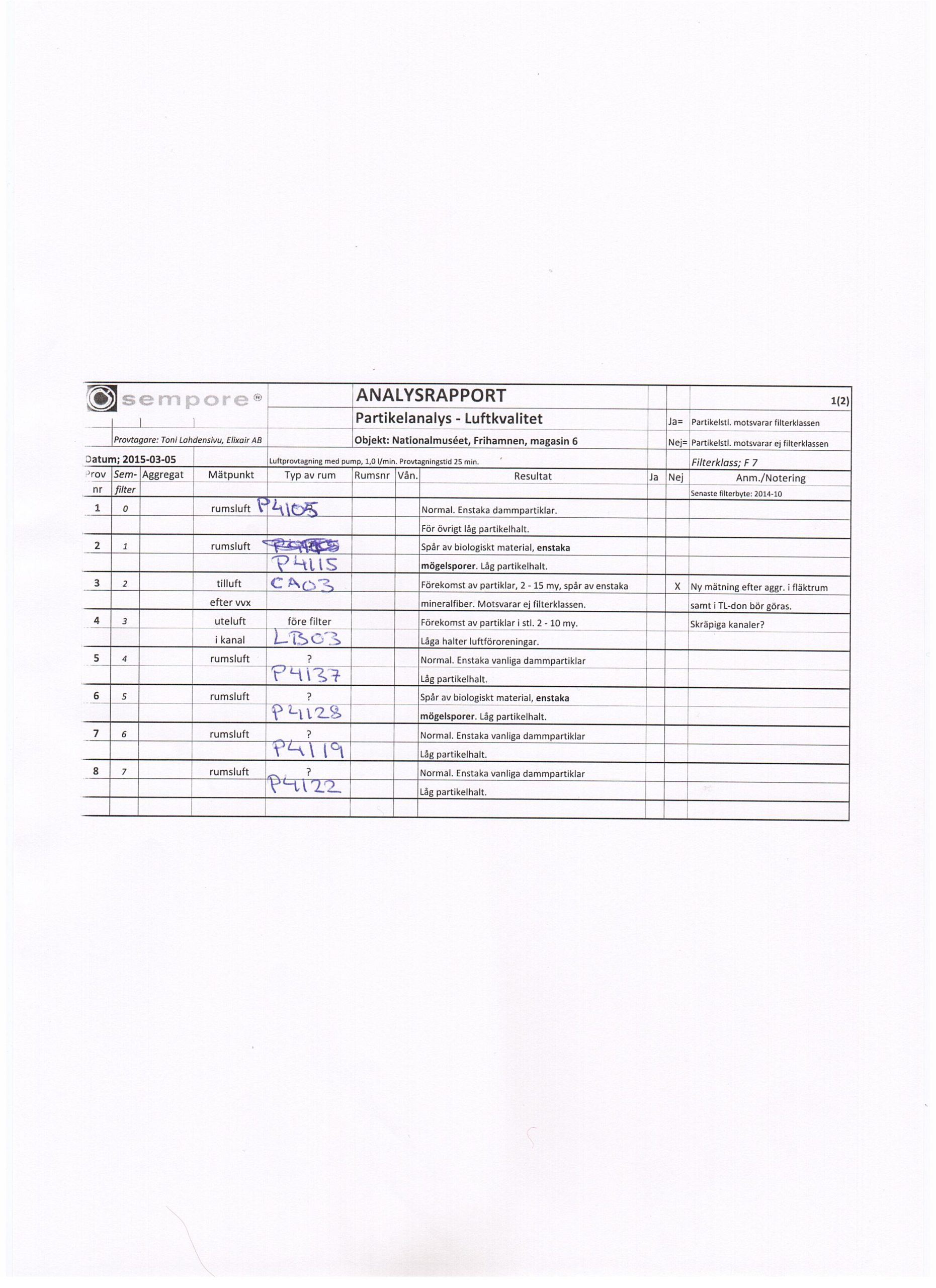Ilmanlaatu mittaukset Ruotsin kansallismuseo