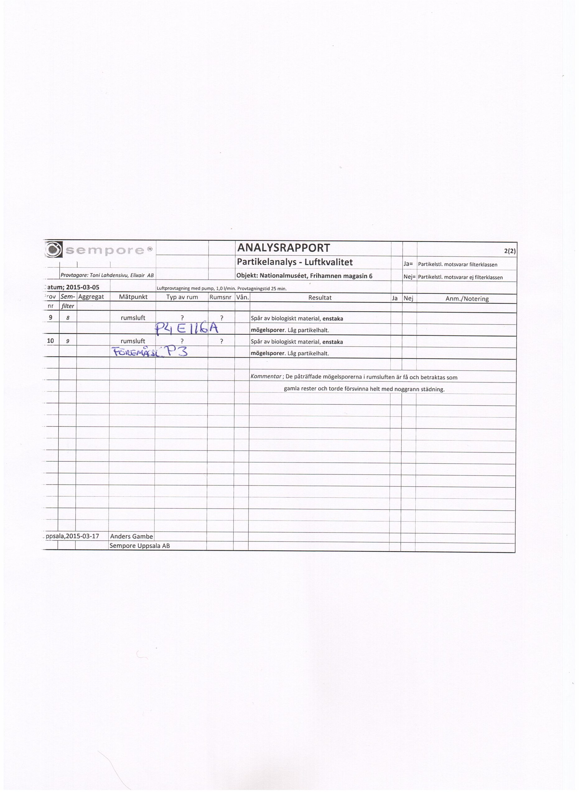Tämän tuloksen perusteella voit ilmoittaa henkilökunnalle/urakoitsijalle/toimeksiantajalle jos ilma on hyvä, tyydyttävä tai tarvitaanko toimenpiteitä ja minkälaisia? Noin 3-10 päivän sisään saat testi vastauksen – Kuvia sekä lausunto siitä, mitä ilmaa sisältää. Ja mitä toimenpiteitä suositellaan.